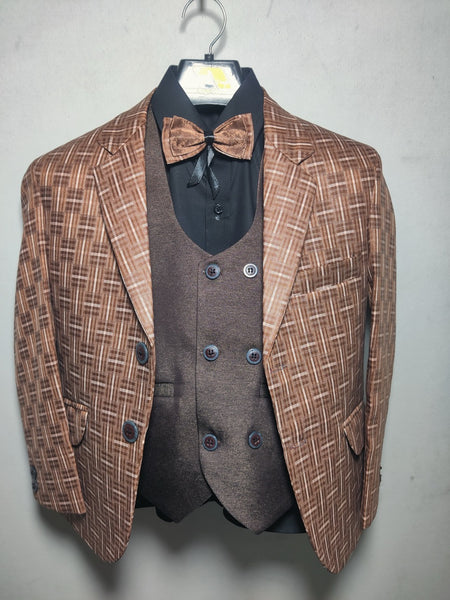 Add a touch of luxury to your wardrobe with the bronze checkered three-piece suit. Combining rich, earthy tones with a bold checkered pattern, this suit exudes confidence and elegance. The tailored blazer, sleek trousers, and...