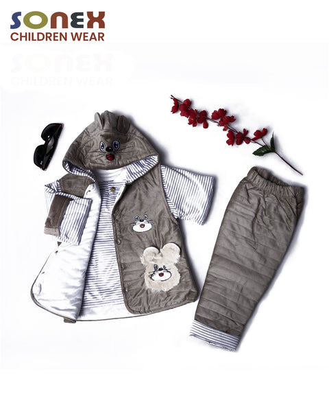 Dress your little one in ultimate comfort with this stylish brown and grey attire designed for juniors. Featuring a soft fabric blend, this outfit is perfect for everyday wear, whether they're at home, school, or out with friends. The chic combination of brown and grey adds a modern touch, ensuring your child looks trendy while feeling cozy.
