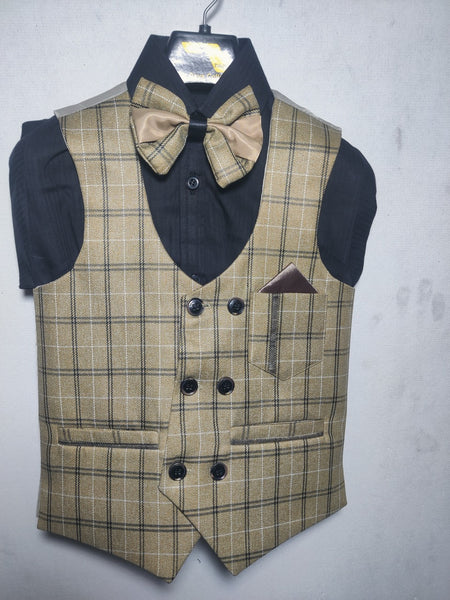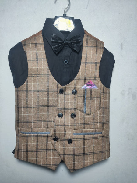 Elevate your style with this stunning bronze and gold checkered waistcoat, where opulence meets sophistication. The rich combination of warm bronze and shimmering gold checks creates a visually striking piece that exudes elegance and confidence. Tailored for a sharp, fitted look, this waistcoat adds a touch of luxury to any ensemble. Whether layered over a crisp shirt for a smart-casual look or paired with a full suit for formal occasions, its unique pattern and color make a bold statement.
