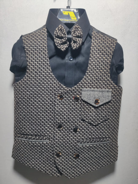 Create a striking, fashion-forward look with this dynamic pairing of checkered waistcoats and tailored shirts. The Checkered Brown Waistcoat with Black Shirt offers a rich, warm brown pattern, complemented by the sleek contrast of a...