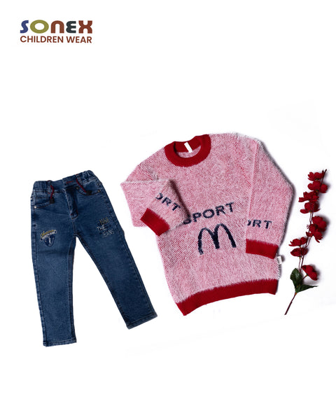Keep your little one warm and stylish with this cozy pink sweater paired with classic blue jeans. The soft fabric of the sweater ensures all-day comfort, while the vibrant pink color adds a fun pop...
