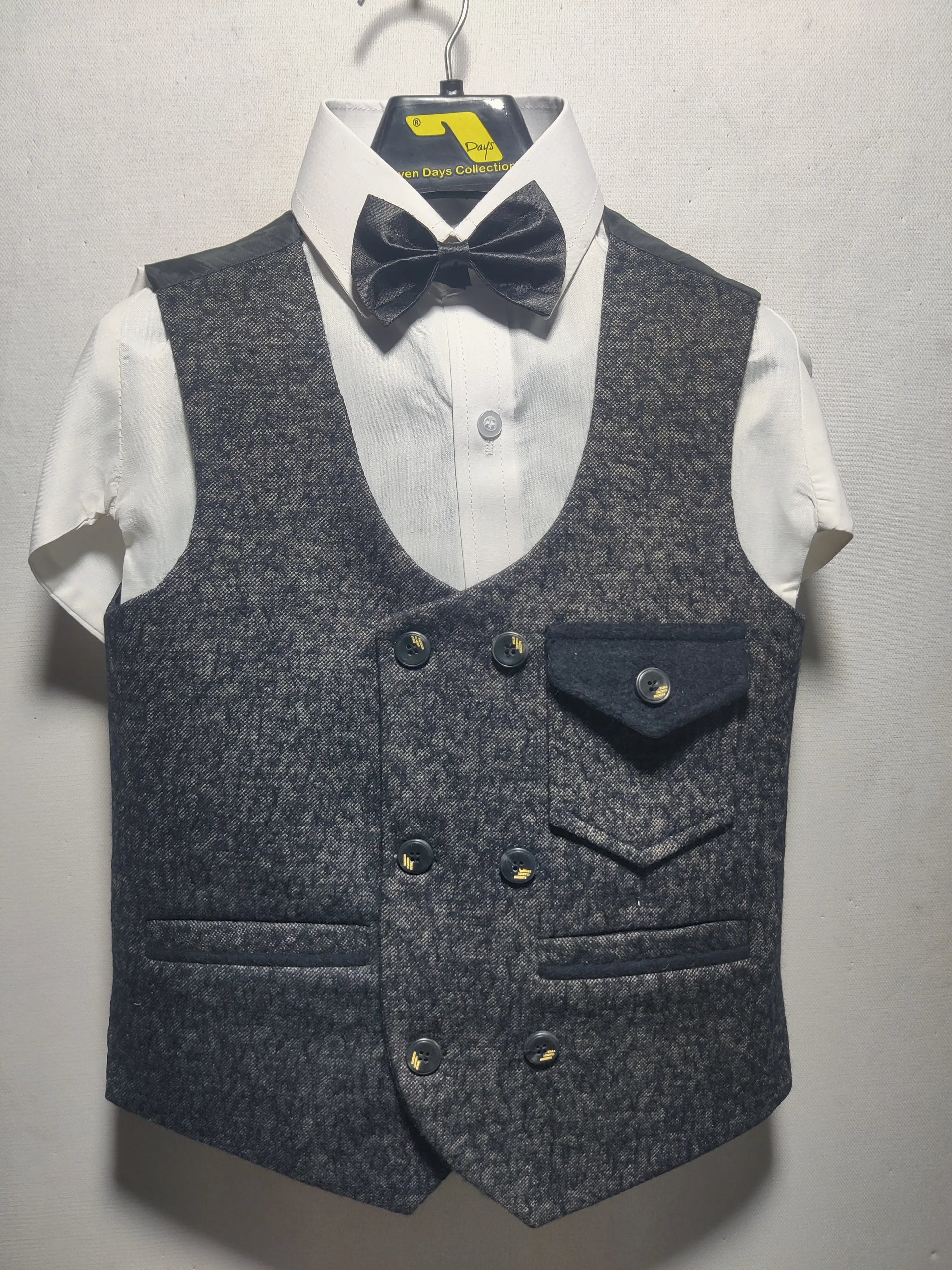 Add a touch of timeless elegance to your wardrobe with this textured brown waistcoat. Crafted from premium fabric with a subtle, sophisticated texture, this piece offers a refined, tailored fit that flatters your frame. The rich brown hue provides versatility, making it the perfect match for both casual and formal looks. Whether paired with a sharp suit for a business meeting or worn with a dress shirt for a more relaxed vibe.
